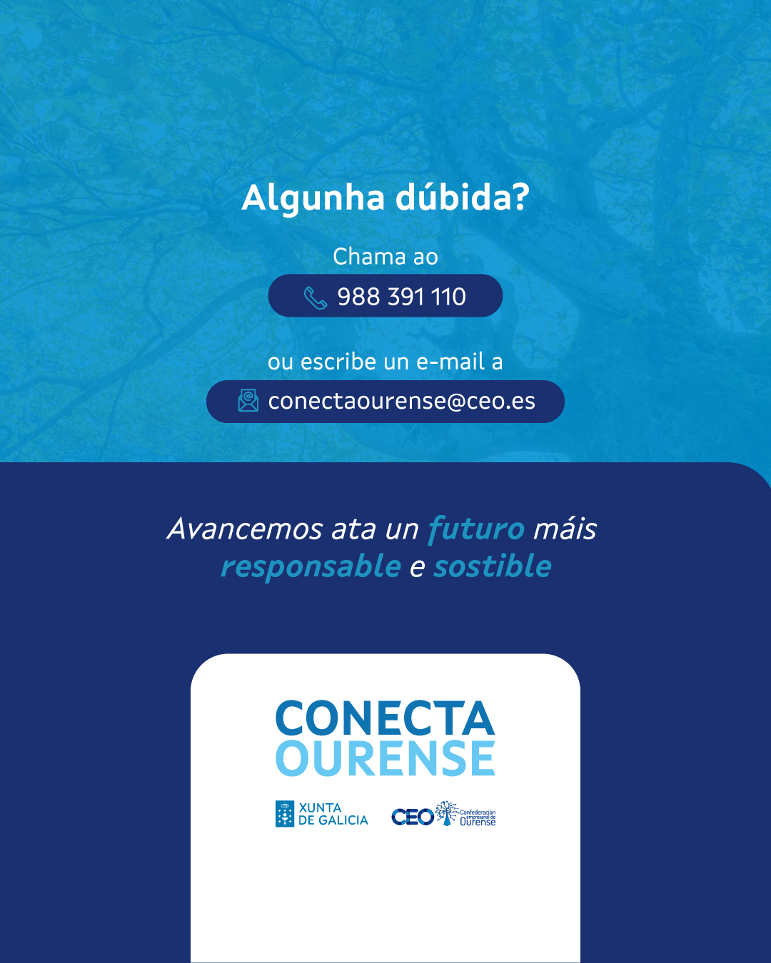 En Conecta Ourense, queremos acompañarte cara a un modelo empresarial máis sostible, co impulso da Confederación Empresarial de Ourense e o apoio da Xunta de Galicia a través do IGAPE.