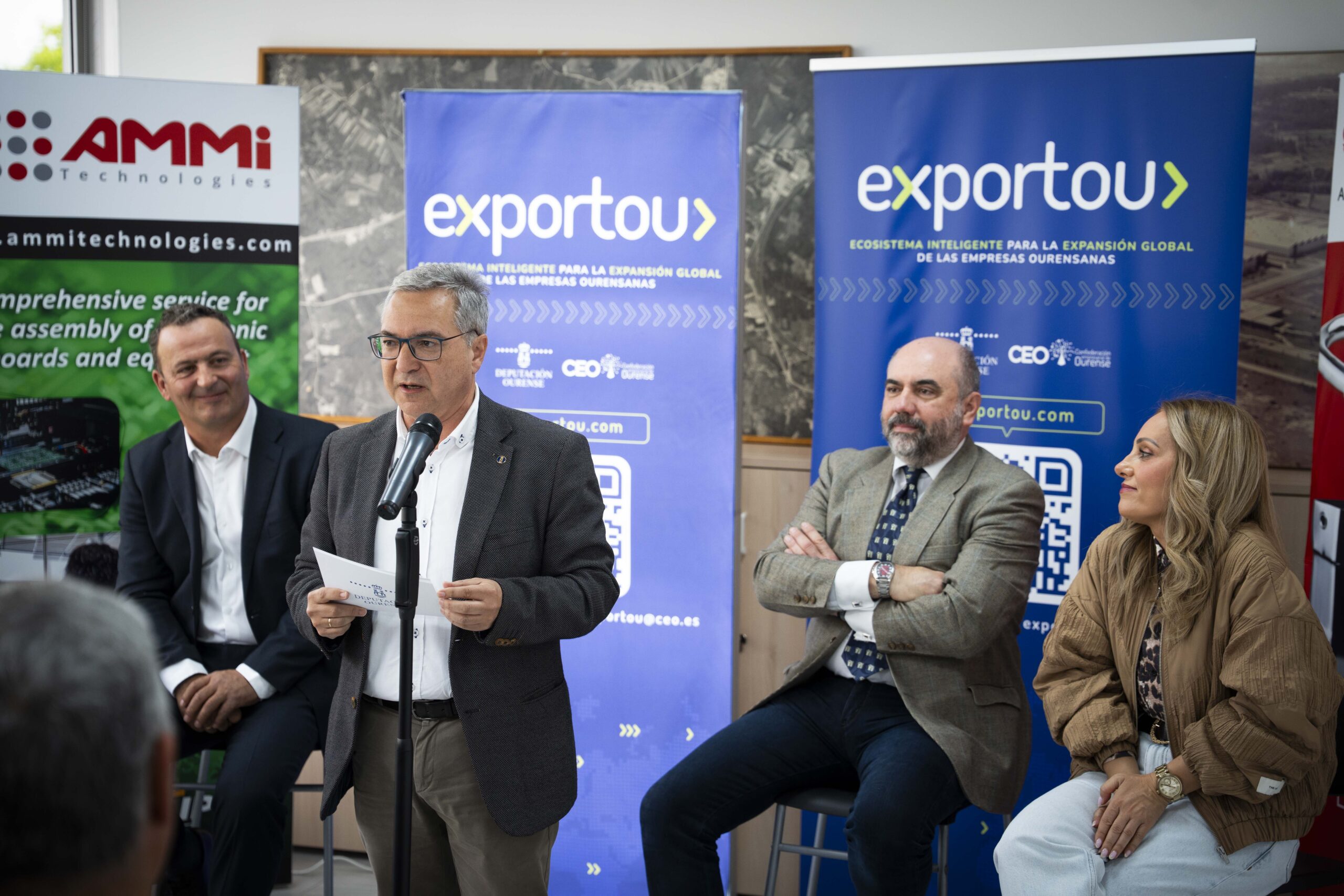 San Cibrao das Viñas, 7 de abril de 2026. CEO y Diputación presentaron hoy en las instalaciones de la empresa Aníbal Metalmecánica las líneas de actuación del programa Exportou para este año 2026, un ambicioso ecosistema inteligente de servicios continuos orientado a acompañar a las empresas en su crecimiento y adaptación y consolidación. Exportou 2026 se configura este año en tres ejes fundamentales que fueron presentados en el acto de hoy por David Martínez, presidente de la CEO, entidad que, con apoyo de la Diputación, puso en marcha hace casi 10 años este proyecto, centrado en apoyar a las empresas en internacionalización, y que fue incorporando acciones a favor de la sostenibilidad y la transformación digital.